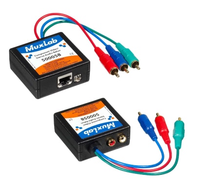 Kit di 2 Balun Audio-Video(stereo), permette di estendere un segnale video (RGB o YPbPr) e 1 canale audio stereo sbilanciato su Cat5e/6 fino ad una distanza massima di 152m(1080p), e 305m (480p). Supporta risoluzioni 480i/p, 720p, 1080i/p. Porta RJ45 per Cat5e/6, 3 connettori RCA maschio per segnale video RGB/YPbPr, 2 connettori RCA femmina per segnale audio stereo. Peso 122g, dimensioni 6.1 x 5.7 x 2.54 cm cm.