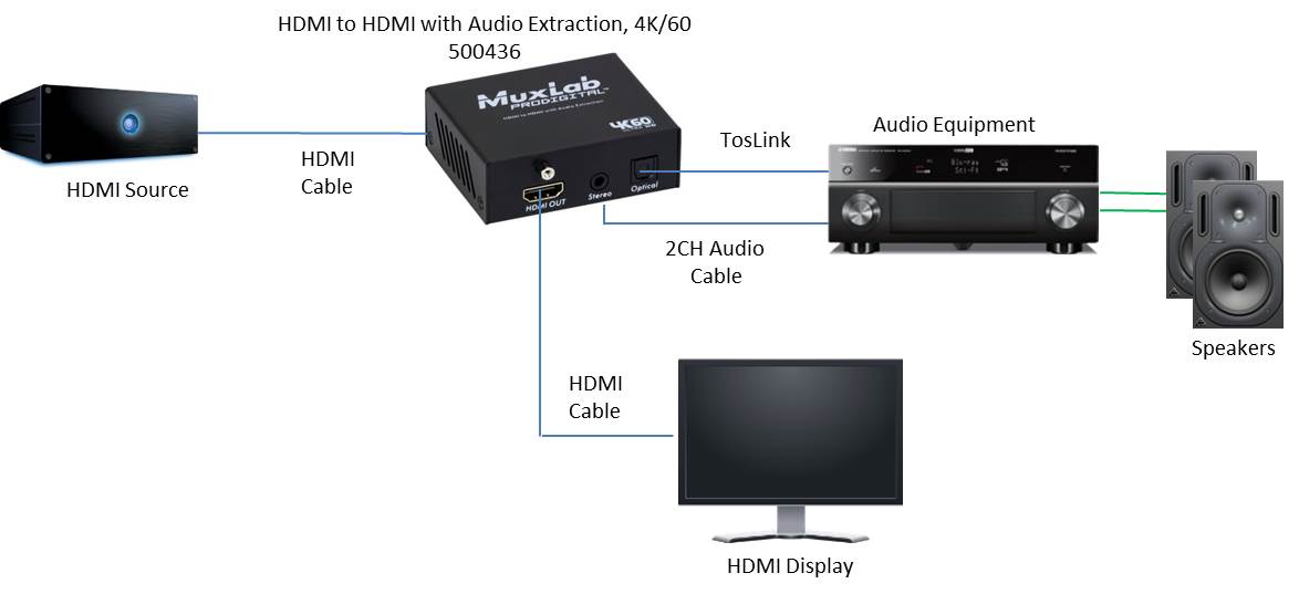 Estrattore audio embedded HDMI consente a una sorgente HDMI 2.0 di essere ripetuta e distribuita su un display HDMI. Supporta...