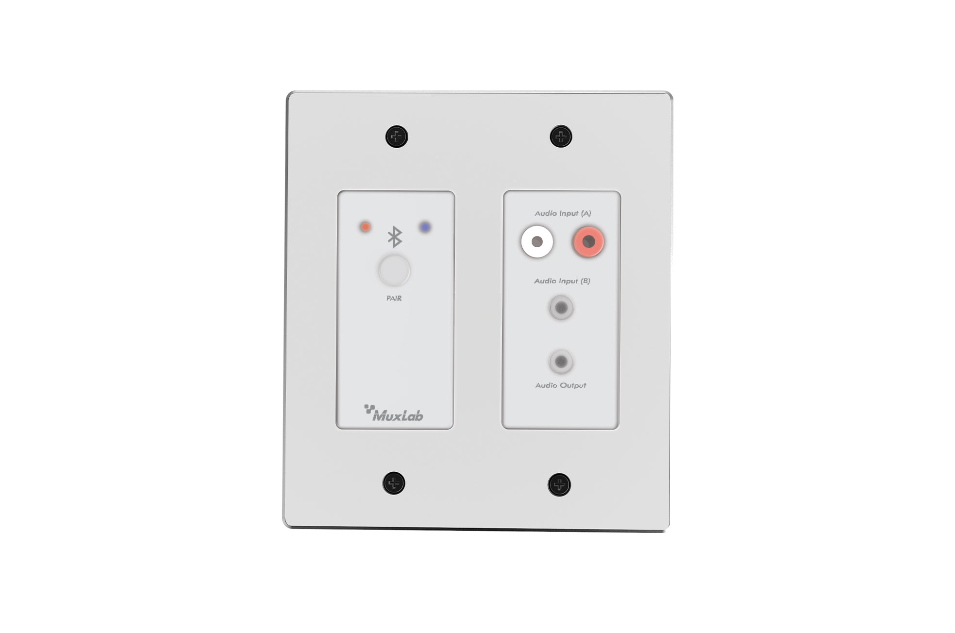 Interfaccia Wall Plate che permette di convertire 2 canali audio Bluetooth o 2 canali audio analogici in 2 canali Dante...