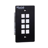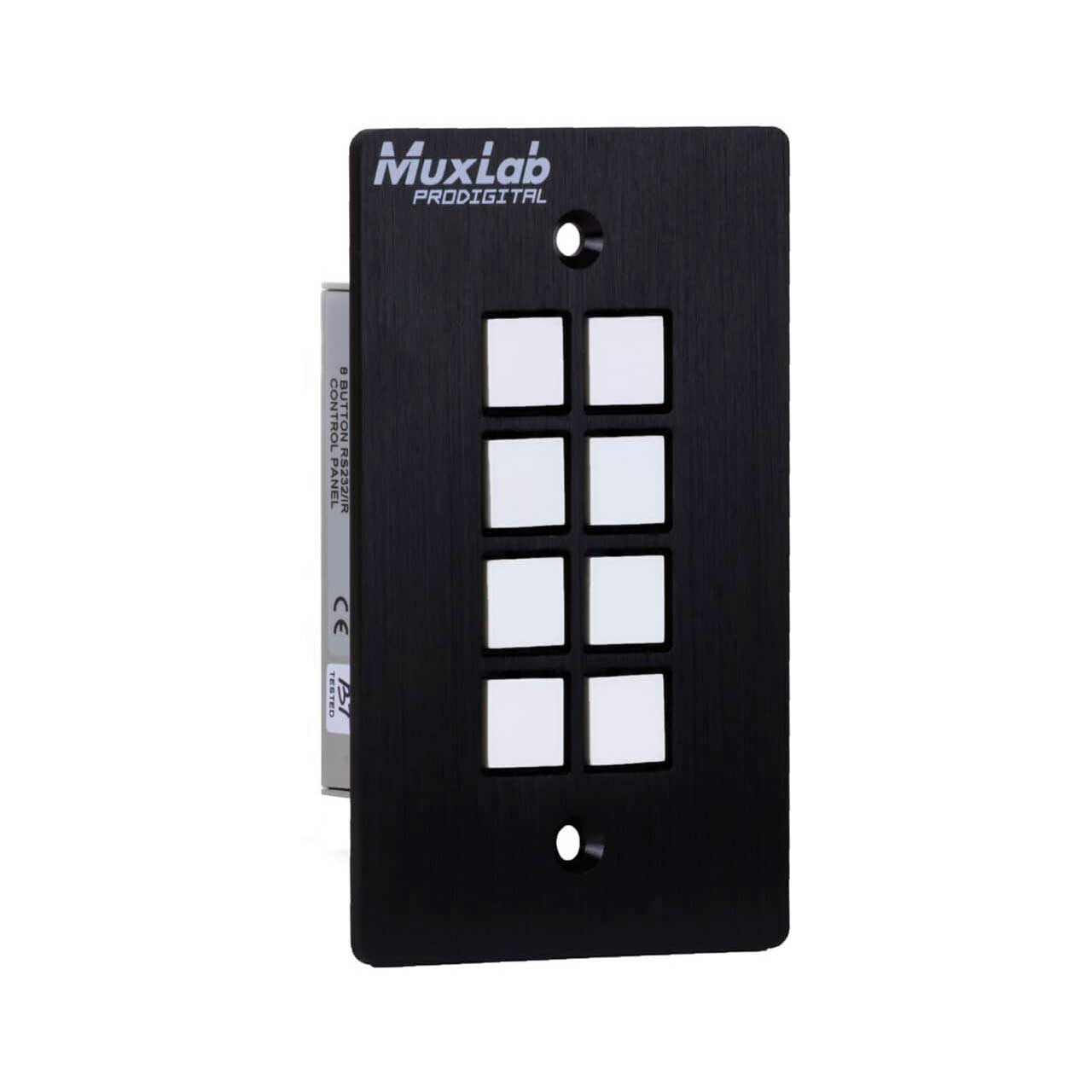 Pannello di Controllo IP/IR/RS232 con 8 pulsanti. Gli 8 pulsanti sono completamente programmabili per il controllo dei dispositivi Muxlab o di terze parti...