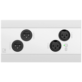 Pannello ingressi e uscite da parete via rete Dante o AES67 a 4 canali, 2 ingressi XLR3 micro-linea con selezione frontale. Abilitazione phantom power. 2 uscite XLR3. Ricevitore Bluetooth. Alimentazione tramite PoE. DSP interno programmabile via rete. Dimensioni 80 x 80 mm. Colore Bianco
