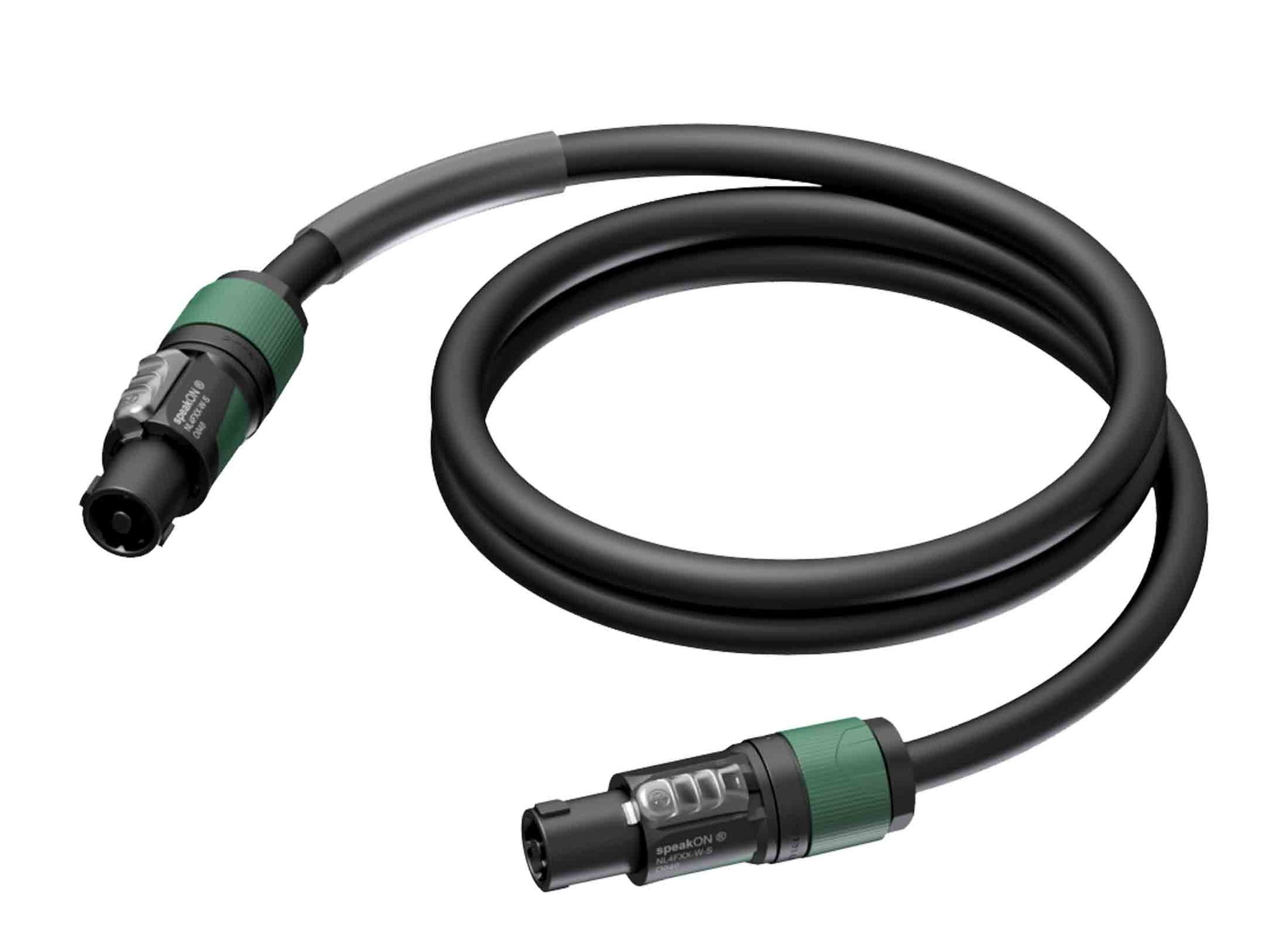Cavo di potenza per loudspeaker da 4 X 2.5 mm², tecnologia 13 awg e connettore Neutrik speakON serie NL4FXX-W-S a 4 poli. Guaina HighFlex, 11 mm di diametro esterno e 60mm di guaina identificativa trasparente. Lunghezza 3 metri. Colore nero.