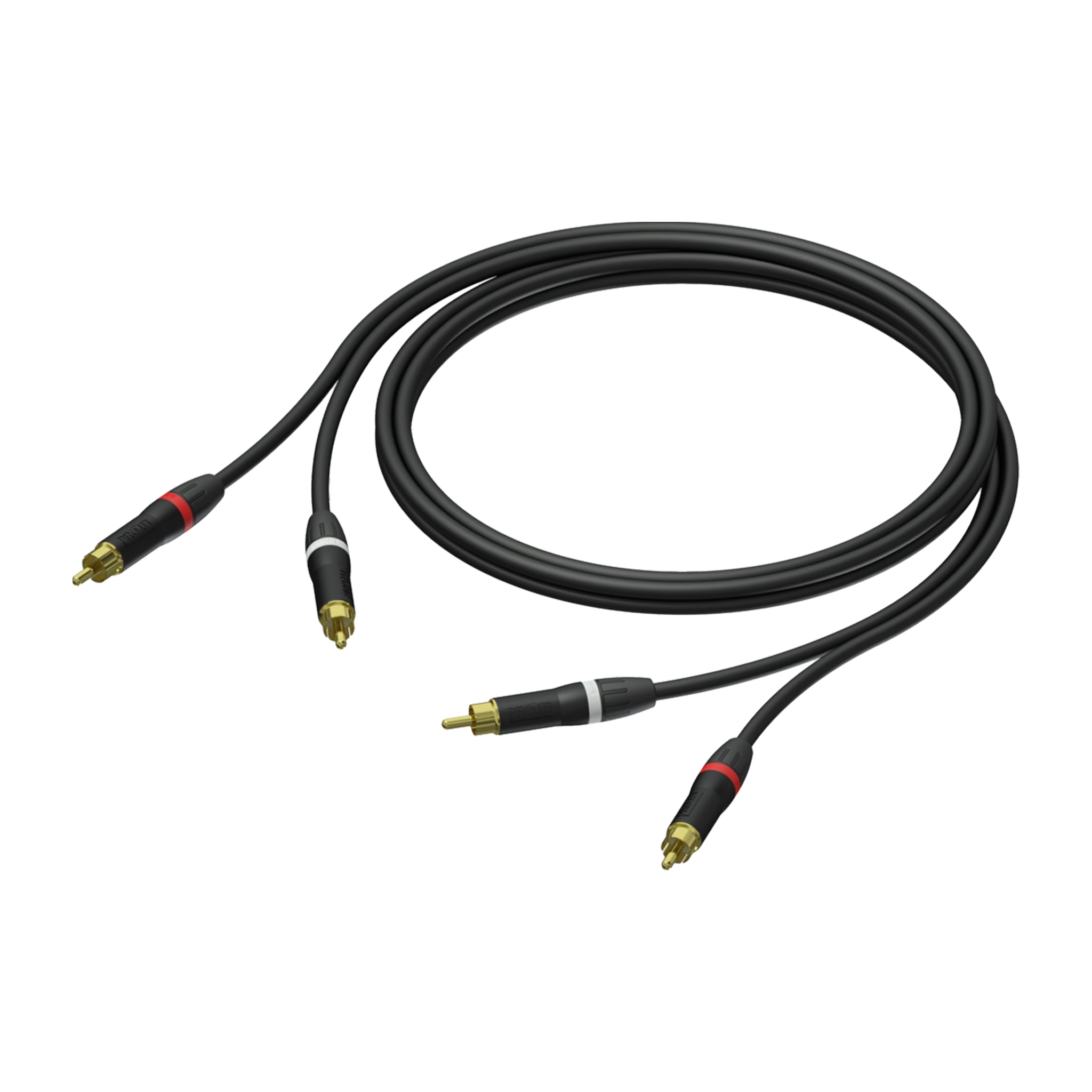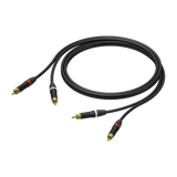 Cavo 2 x RCA maschio e 2 x RCA maschio, identificati da colori rosso e bianco. Connettori Neutrik placcati oro. Guscio di zinco pressofuso. Cavi paralleli uniti, facilmente separabili e 60mm di guaina trasparente identificativa. Guaina esterna UltraFlex. Lunghezza 3 metri. Colore nero.