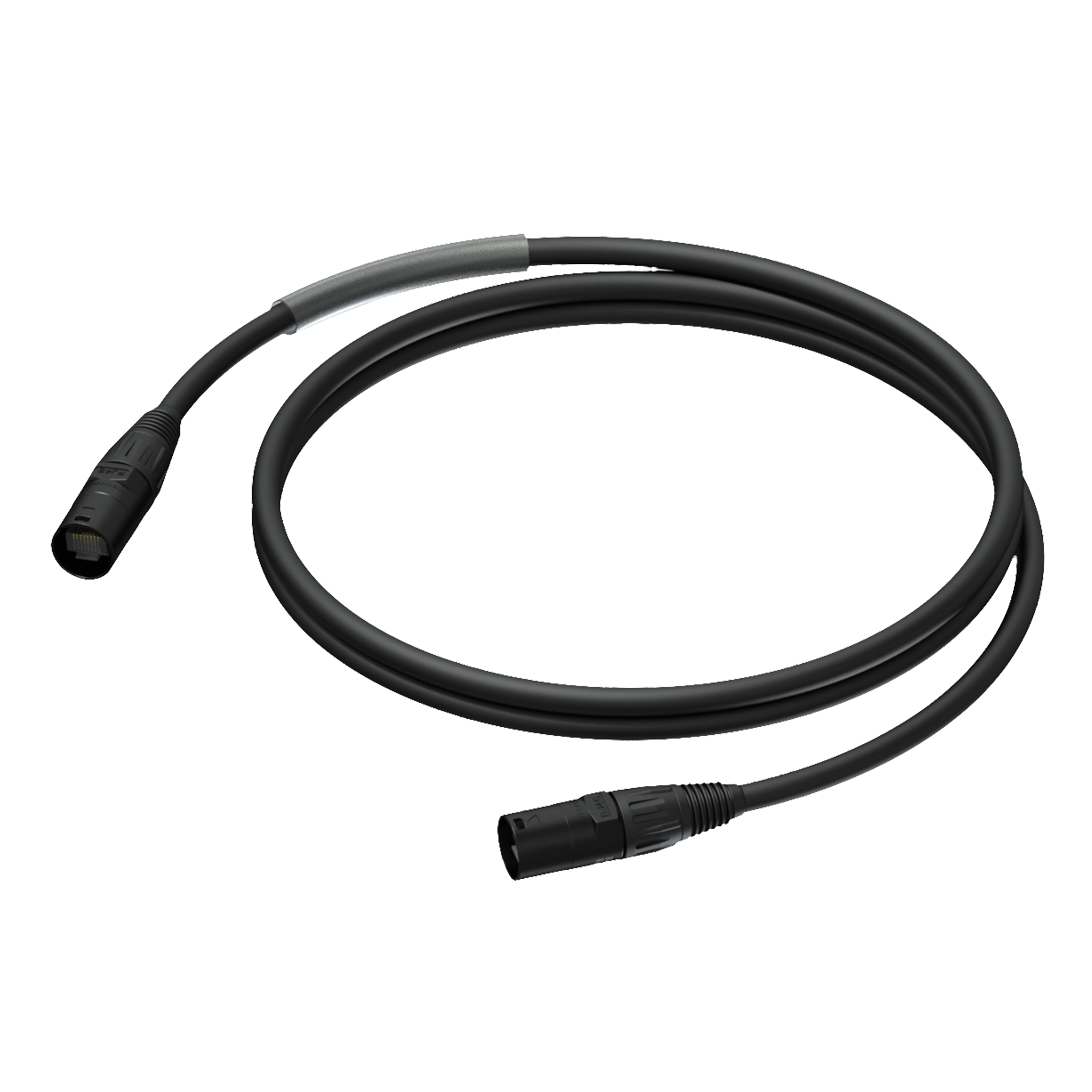 Cavo di rete CAT5E SF/UTP con conettore etherCON e contatti placcati oro. HDBaseT compliant, 100 Ohm di impedenza. Risponde alla normativa antincendio IEC60332. 60mm di guaina identificativa trasparente. Guaina esterna tecnologia DuraFlex. Lunghezza 0.5 metri. Colore nero.