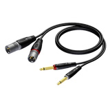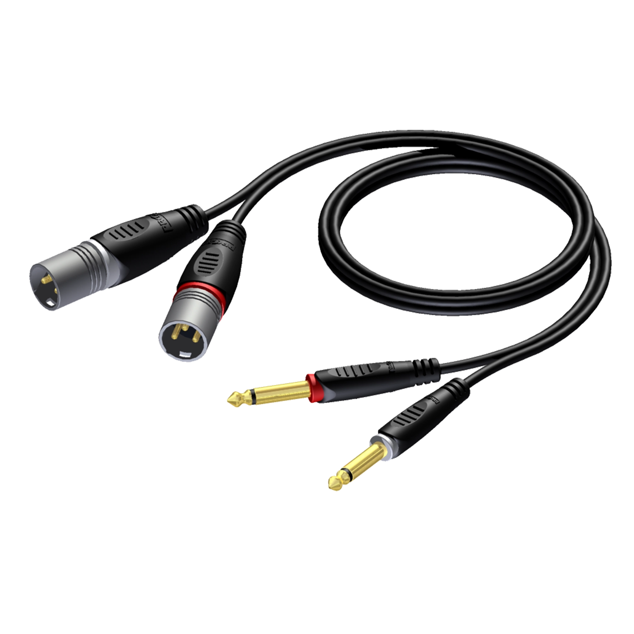Cavo audio stereo 2 x XLR maschio - 2 x 6.3 mm Jack maschio mono. Connettori placcati oro. Utilizzabile in ambito indoor, installazioni fisse o mobili. Guaina flessibile in PVC. Lunghezza 1.5 metri. Colore nero.