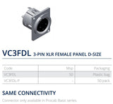 Connettore da pannello 3-pin xlr femmina. Confezione da 50 pezzi.