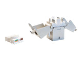Frutto Keystone RJ45 CAT6 con terminazione ad innesto per cavi rigidi. Connettore con schermatura.