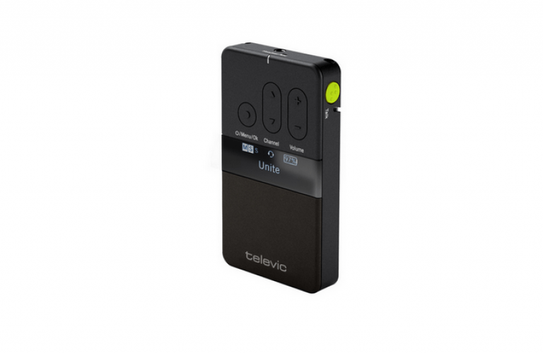 Ricevitore digitale bodypack DECT 1880-1900 MHz, con pulsante per intervento verso il dispositivo master, display funzioni OLED, microfono interno, uscita stereo su mini-jack. Criptazione AES256. Batterie Li-Ion interne con autonomia fino a 15 ore. Portata in area libera fino a 300 metri.Connettore USB-C per audio e ricarica. Inclusa clip e laccio appendimento. Dimensioni 58 x 102 x 15.5 mm, peso 105 g.